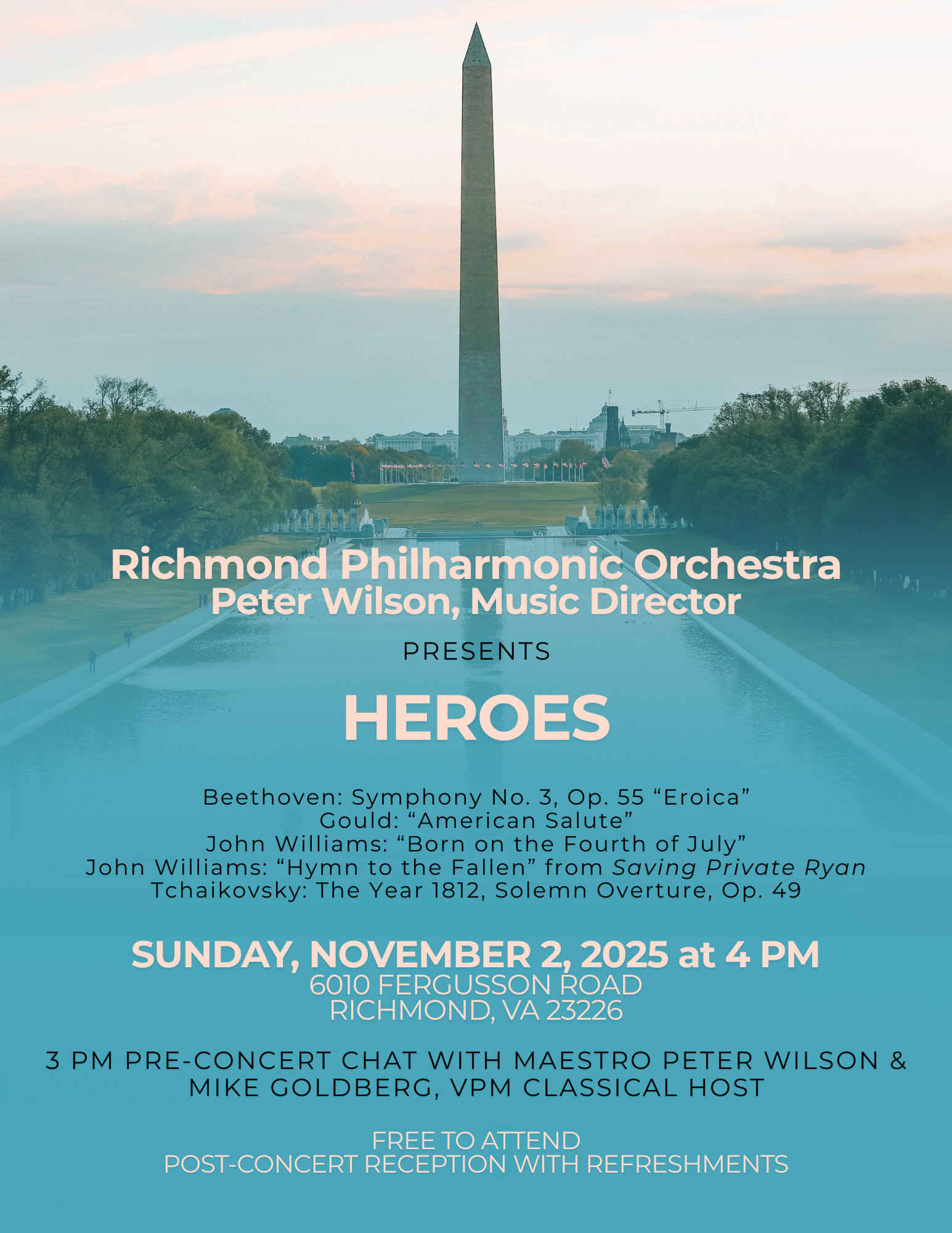 Join the Richmond Philharmonic Orchestra for its 54th season! Join us for our Fall Masterworks concert on Sunday, November 2nd, 2025 celebrating the 250th birthday of our country!